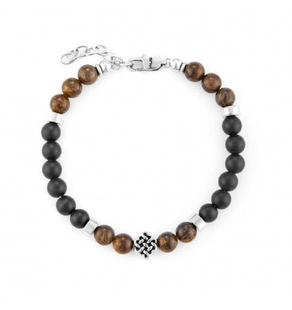Bracciale da uomo di 4US Cesare Paciotti. Bracciale realizzato in acciaio, onice e bronzite  Lunghezza bracciale: 18 cm + 4 cm di estensione. La chiusura è con moschettone.